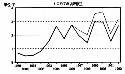 当初、共同住宅と学生向けそして単身者用と分けられていた統計が、1987年以降、ファミリー・マンションとワンルーム・マンション、それにファミリー+ワンルーム・マンションというように変わったので、単身者用の戸数は少なく表れるようになった。